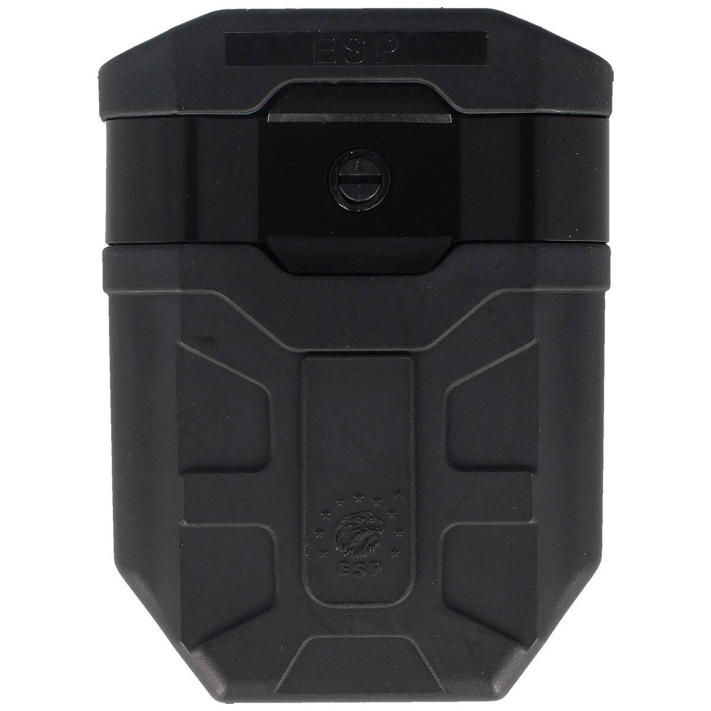 Self-locking universal holder is designated for carrying of all standard magazines for the rifle AK-47 and other magazines based on the AK-47 construction. The sophisticated design with the fixation spring enables a quick drawing of the magazine during the so-called combat re-loading. Each user can himself set the desired thrust force of the magazine with use of 3 spacers supplied with the holder.