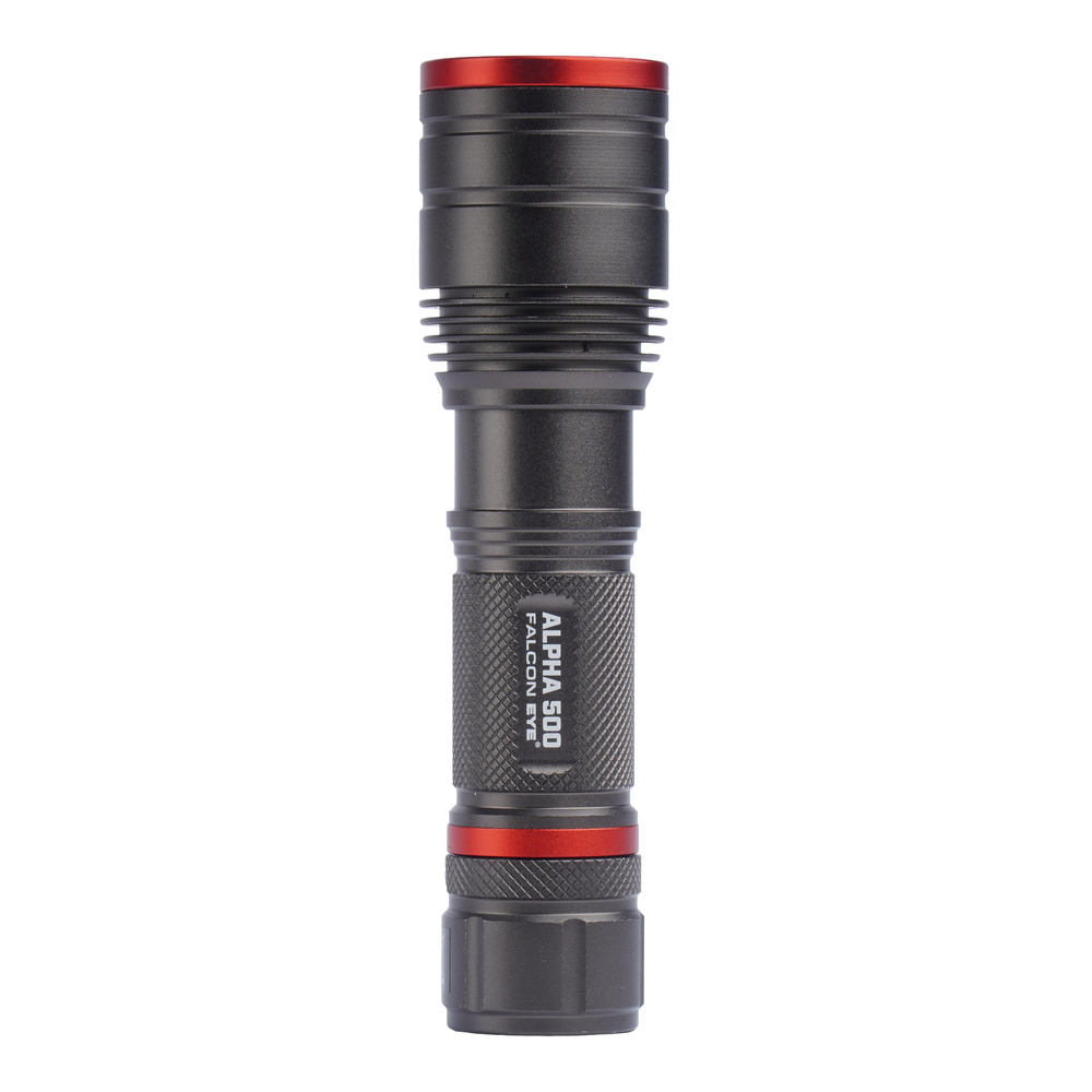 A functional, yet easy-to-use Alpha 500 flashlight with beam focus. Falcon Eye has produced a device that is intuitive to use, yet can quickly illuminate a wide area or a specific point. If necessary, the user still has a Strobo mode with flashing light. The milled aluminum body conceals a basket for three AAA batteries in a sealed compartment.