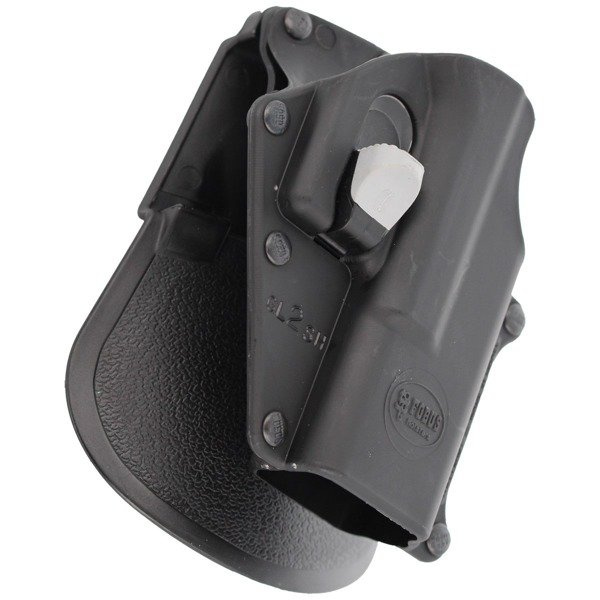 Tighten your belt. Place the holster on your hip and make sure the paddle is pushed all the way down on your belt. Push the safety button downwards and draw. The RSH series is not a standard "quick–draw" holster but rather a safety one, and should be used as such.