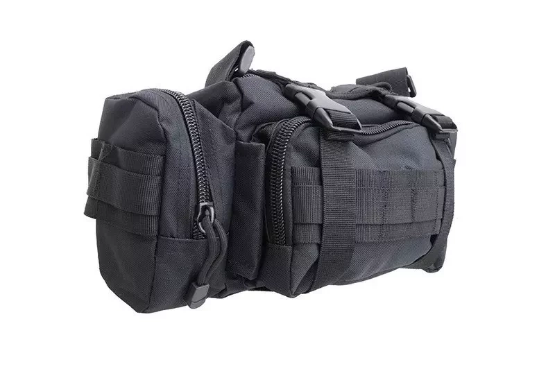 An engineer's bag for carrying a variety of equipment or tools. Made entirely of nylon fiber, which ensures its high durability. A considerable number of large pockets and compartments will meet the expectations of most users. The bag can be mounted on the belt with MOLLE/PALS standard tension straps, carried on the shoulder, and additionally hooked up on polymer loops.