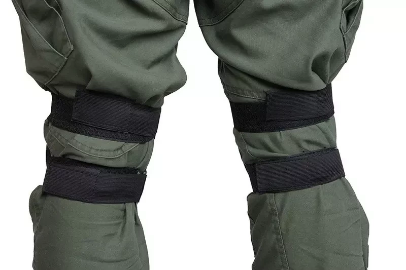 The knee protectors are equipped with adjustable Velcro fastened straps for a precise fit to the user. The use of protective goggles is recommended during airsoft games.