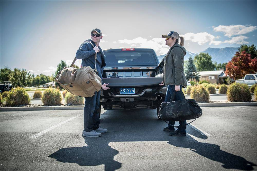 The bag is equipped with comfortable, padded shoulder strap, as well as webbing carrying handles. On the sides there are two shorter drag handles that can come in handy when you need to take the bag out of the cars trunk. The bag can be folded to one of its side pockets that assist in storage of it.