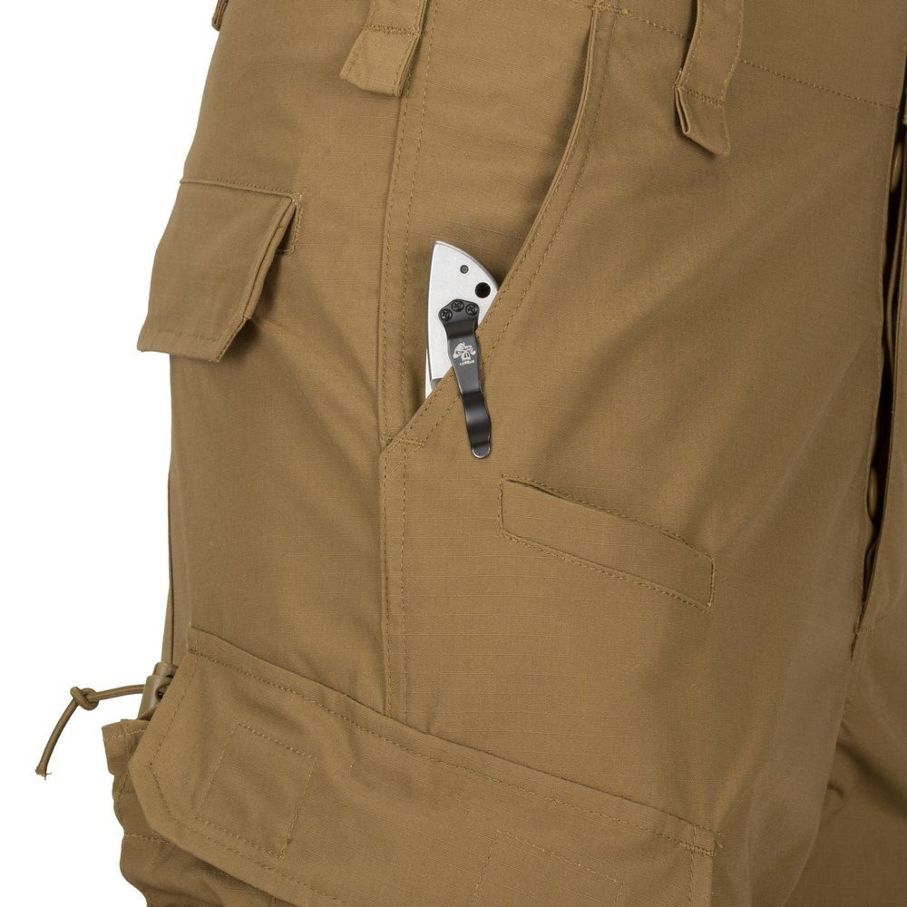 The CPU® (Combat Patrol Uniform) military pants from Helikon-Tex are inspired by the Polish uniform pattern 2010 and are made of PolyCotton Ripstop fabric. Designed with high ergonomics in mind, they allow full range of motion and efficient operation in difficult terrain. The loose cut combines comfort with functionality. The adjustable waistband and drawstrings in the legs allow for a precise fit.