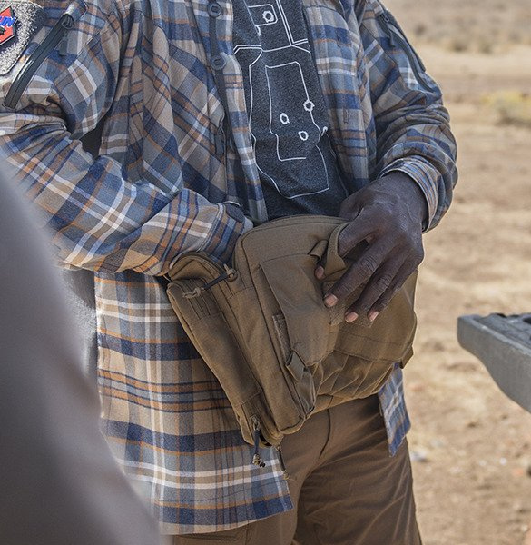 Pistols are carried in a zippered pocket, padded and lined with soft velour, compatible with Versatile Insert System.