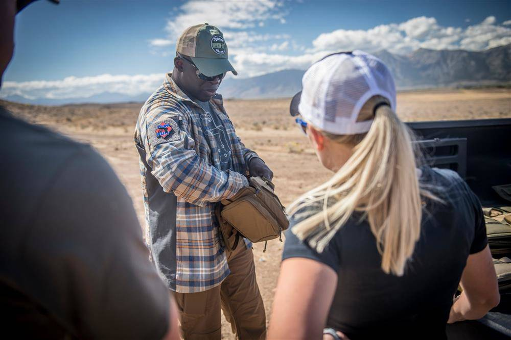 Pistols are carried in a zippered pocket, padded and lined with soft velour, compatible with Versatile Insert System.