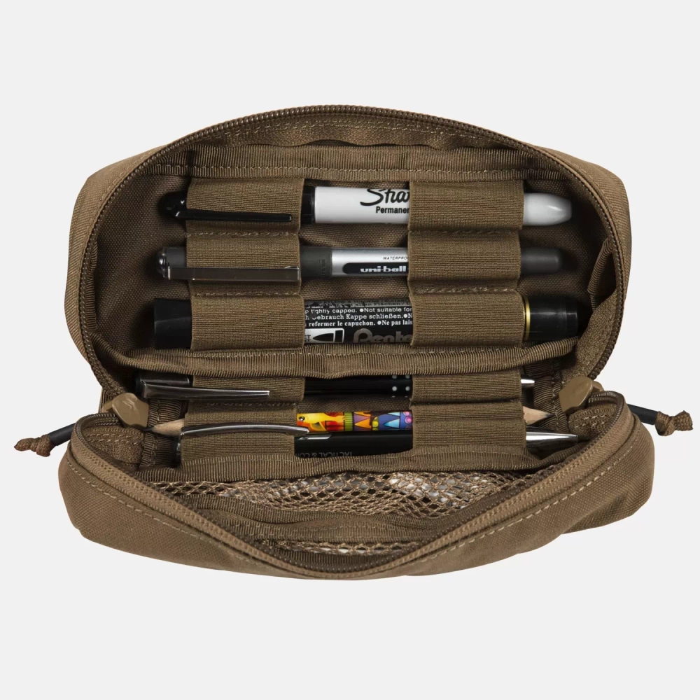 Pencil case organizer for organizing office supplies from Helikon. It was made of Cordura nylon fabric, characterized by high wear and abrasion resistance. Inside, the user has six compartments for tactical pens, pencils and even tools such as screwdrivers, as well as a single mesh zippered pocket.