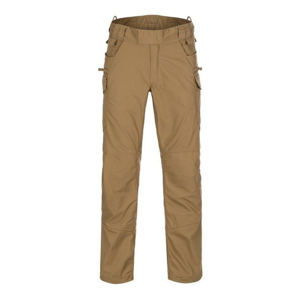 The pants have minimalistic loops for suspenders. Wide belt loops will fit up to 50 mm belts, while additional loops on front allow dummy cording. Additional visual feature are the Helikon-Tex® branded buttons. To provide better protection against small rain, the fabric can be impregnated with special wax.