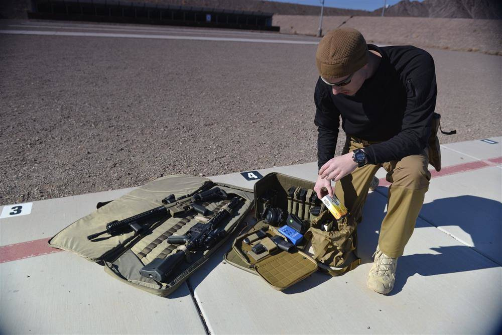 The bag is made entirely of Cordura, which is created from nylon fibers, stiff panels retracted in the inner sides were used to reinforce the panels. The bag is designed to create a field workstation at the shooting range if necessary. The polymer inserts in the sides can be pulled out and used as a pad when handling weapons, the polymer used for them can be easily cleaned in case of dirt.
