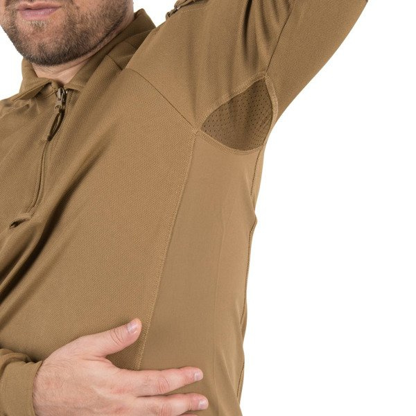 The manufacturer has placed pockets on the elbows for protective inserts. A practical goggle loop was sewn under the central YKK® brand zipper. Thanks to its reinforced seams and durable materials, the shirt performs well in demanding training conditions, while its classic polo cut also makes it suitable for everyday use. It can be worn with tactical pants or a tactical vest.