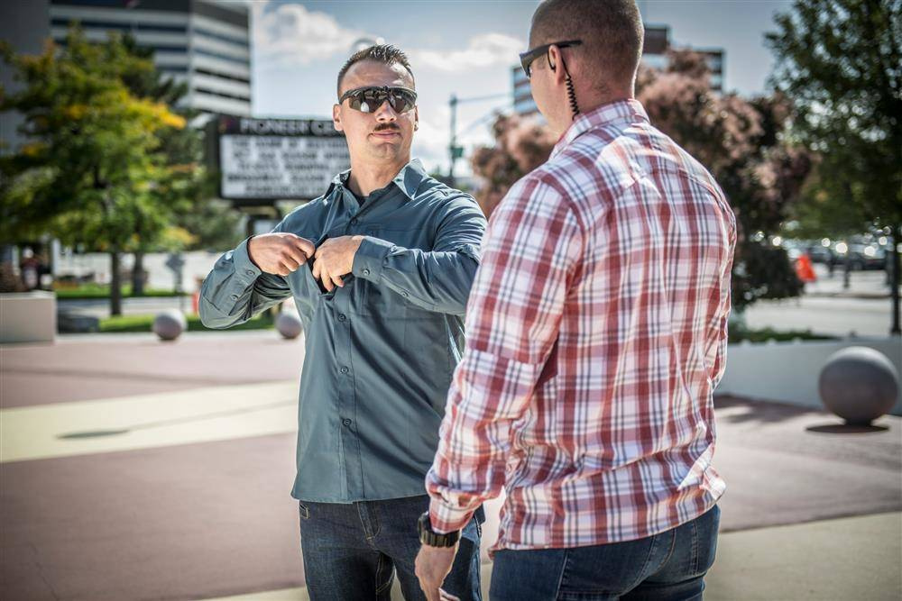- Two zippered chest pockets