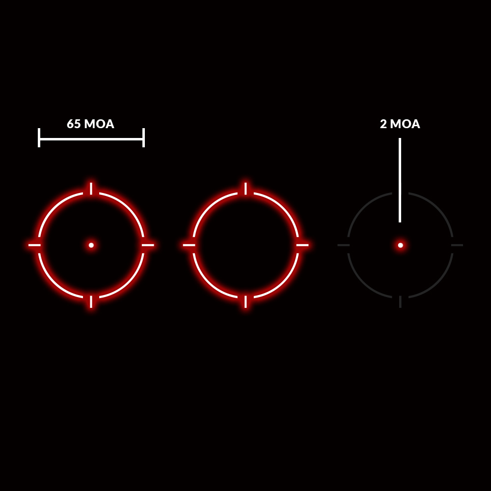 | Aiming points | Dot 2 MOACircle 65 MOADot 2 MOA + Circle 65 MOA |