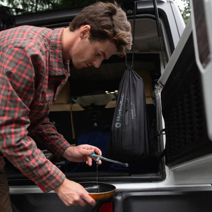 A leak-proof 10 liter water bag with an innovative two-piece design, an easy and intuitive tap, wide filling opening closed with a zipper, nylon drawstrings for pulling and carrying. Includes a 28 mm filter adapter.