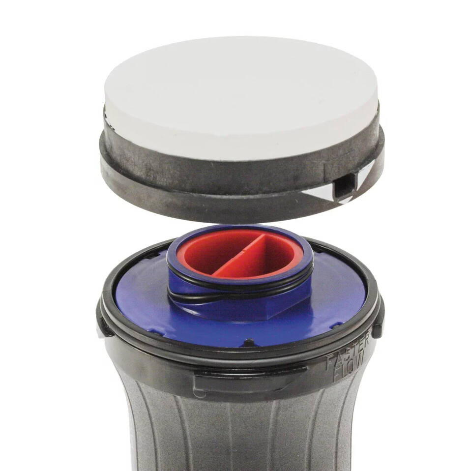 Filtering capacity of up to 2 L per minute in higher flow mode. The filter also has a longer flow mode, which gives a flow rate of up to 1 L per minute. The replaceable cartridge allows for long-term use of the device. Thanks to its compact size, it easily fits into a hiking backpack. The main advantage of the Vario Microfilter is its battery-free operation.