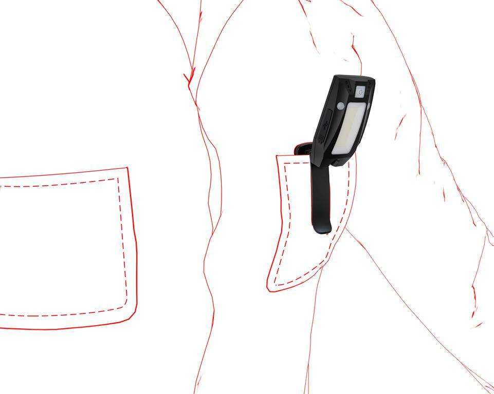 LED flashlight equipped with an articulated head that allows you to precisely direct the light in any direction. The COB-type LED panel provides a widely dispersed beam of light with a maximum brightness of 100 lumens, available in four modes, including white at three levels - 100 lm, 20 lm, 5 lm - and red.
