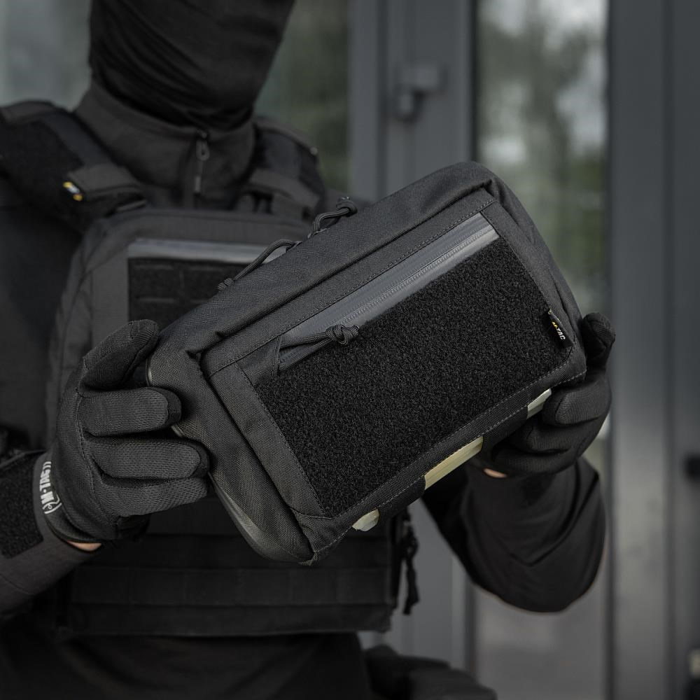 The M-Tac tactical pocket will help you organize your equipment and accommodate many useful accessories such as: smartphone, compass, documents, flashlight or multitool. It is equipped with a waterproof AquaGuard zipper that protects the contents from moisture. Mounting to tactical equipment is possible thanks to Laser Cut panels in the MOLLE standard.