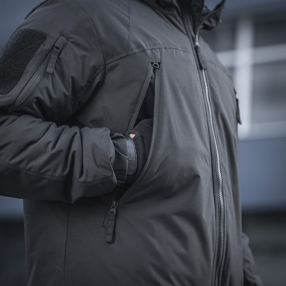 The M-Tac Alpha Gen.III Pro Jacket was designed for tactical and outdoor activities during the sulfurous cold and harsh winters. It provides reliable protection against cold, wind and moisture with a construction made of nylon additionally insulated with 150 g/m2 modern synthetic fiber G-Loft. A breathable 8000x8000 membrane is responsible for thermal comfort and moisture protection.