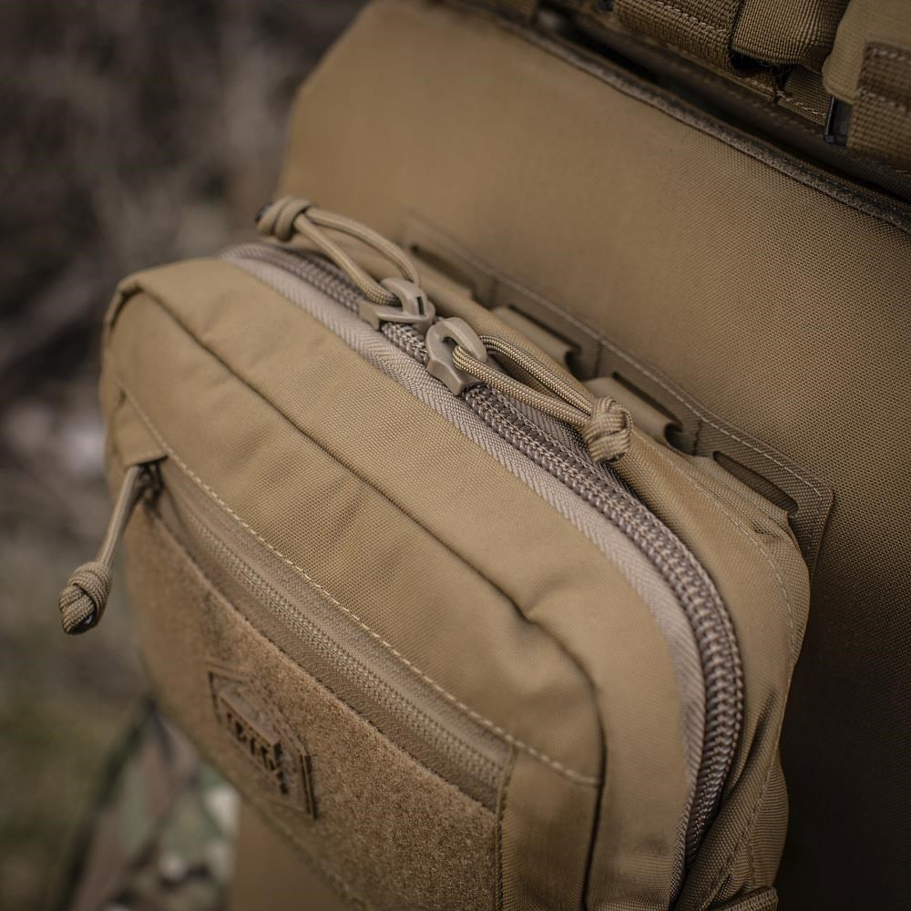 Mounting in the MOLLE standard allows you to attach the organizer to a tactical vest or cummerbund belt, as well as to other equipment with carabiners or paracord. The top section is closed using a YKK zipper, whose larger teeth allow for faster and easier unzipping. The inner compartments of the pocket are covered with a Velcro panel that allows attachment of accessory modular inserts.