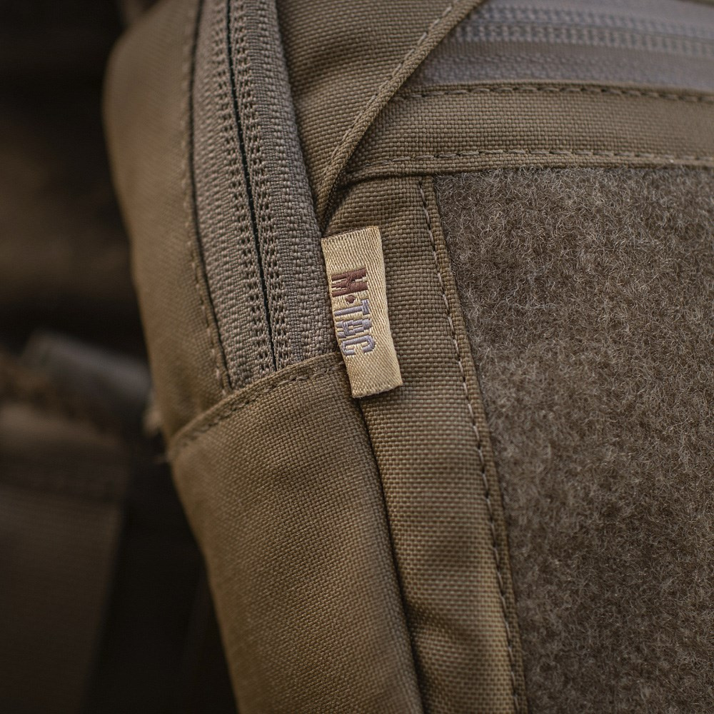 The tactical pocket has a roomy main compartment with 3 additional pockets, a velcro panel on the front for attaching patches, and YKK zippers. Made of high quality 500D Cordura for durability and resistance to harsh weather conditions.