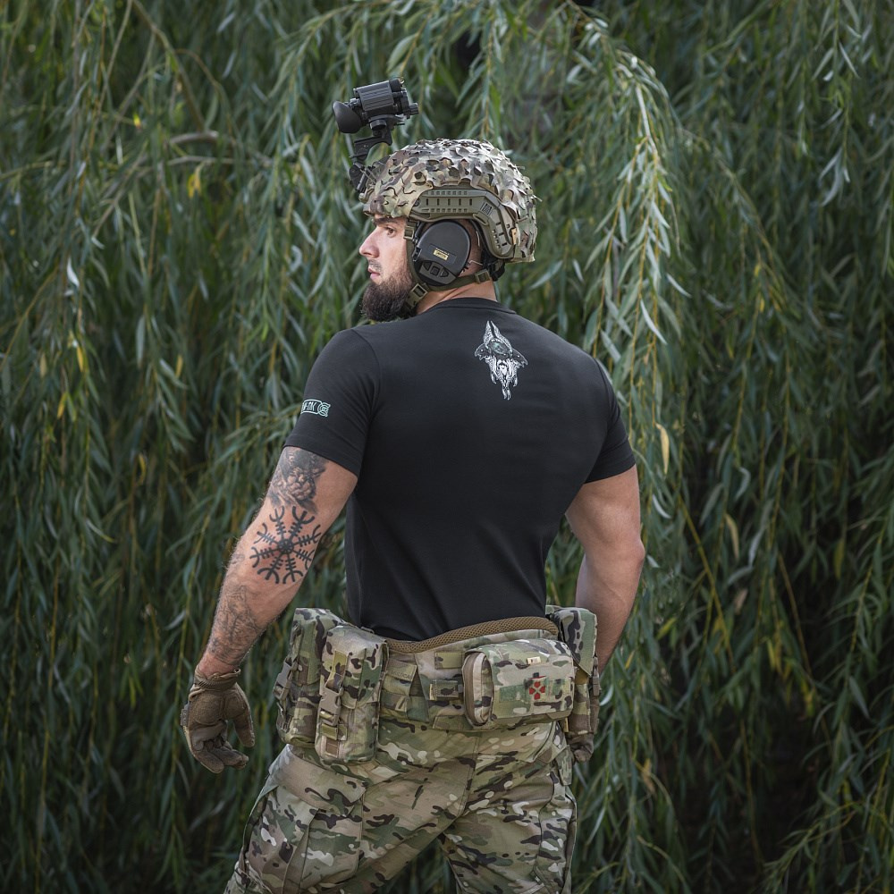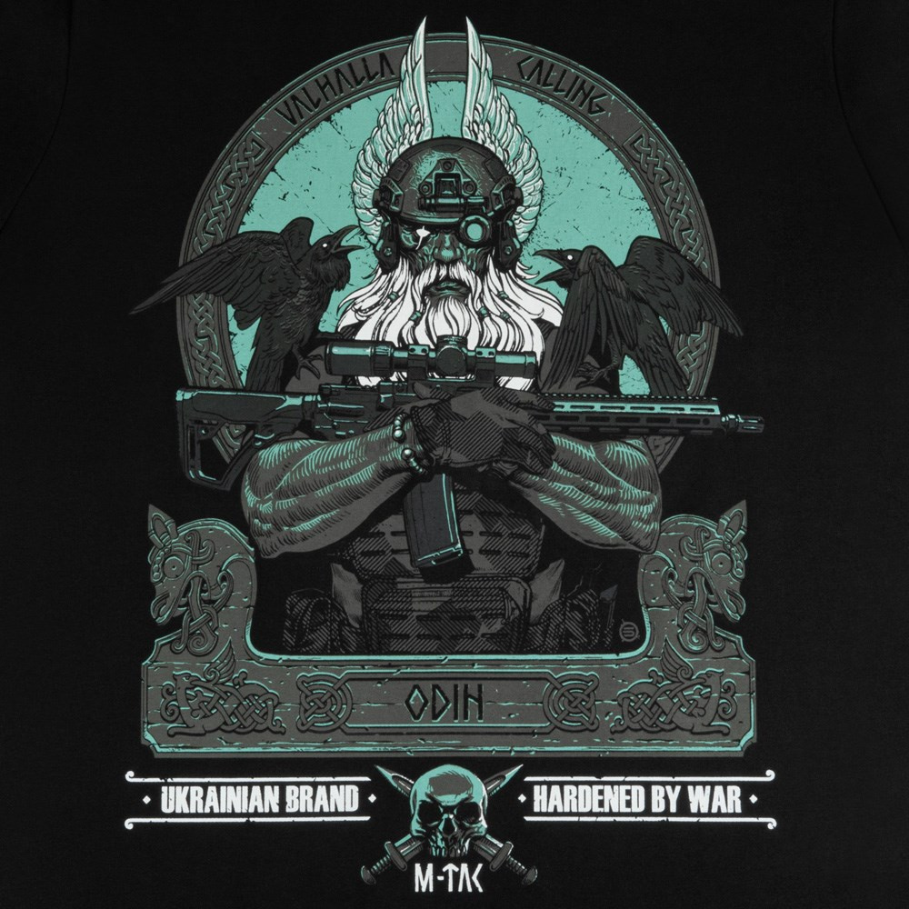 The Odin Mystery T-shirt is the perfect choice for lovers of both militaria and Viking mythology and culture. The T-shirt features a unique print with the image of Odin, the god of war and wisdom in Norse mythology, along with two ravens sitting on his shoulders. The determined god, dressed in modern battle gear, symbolizes strength, courage and readiness to fight.