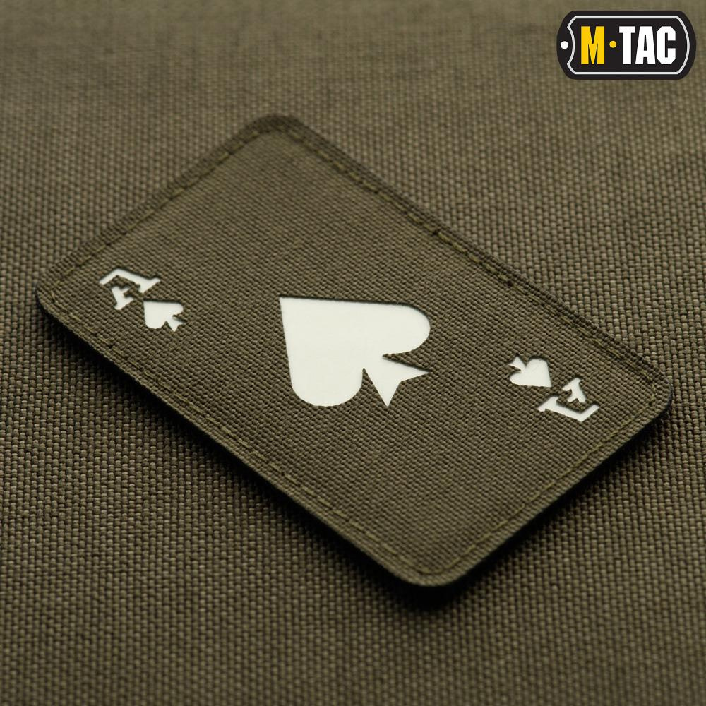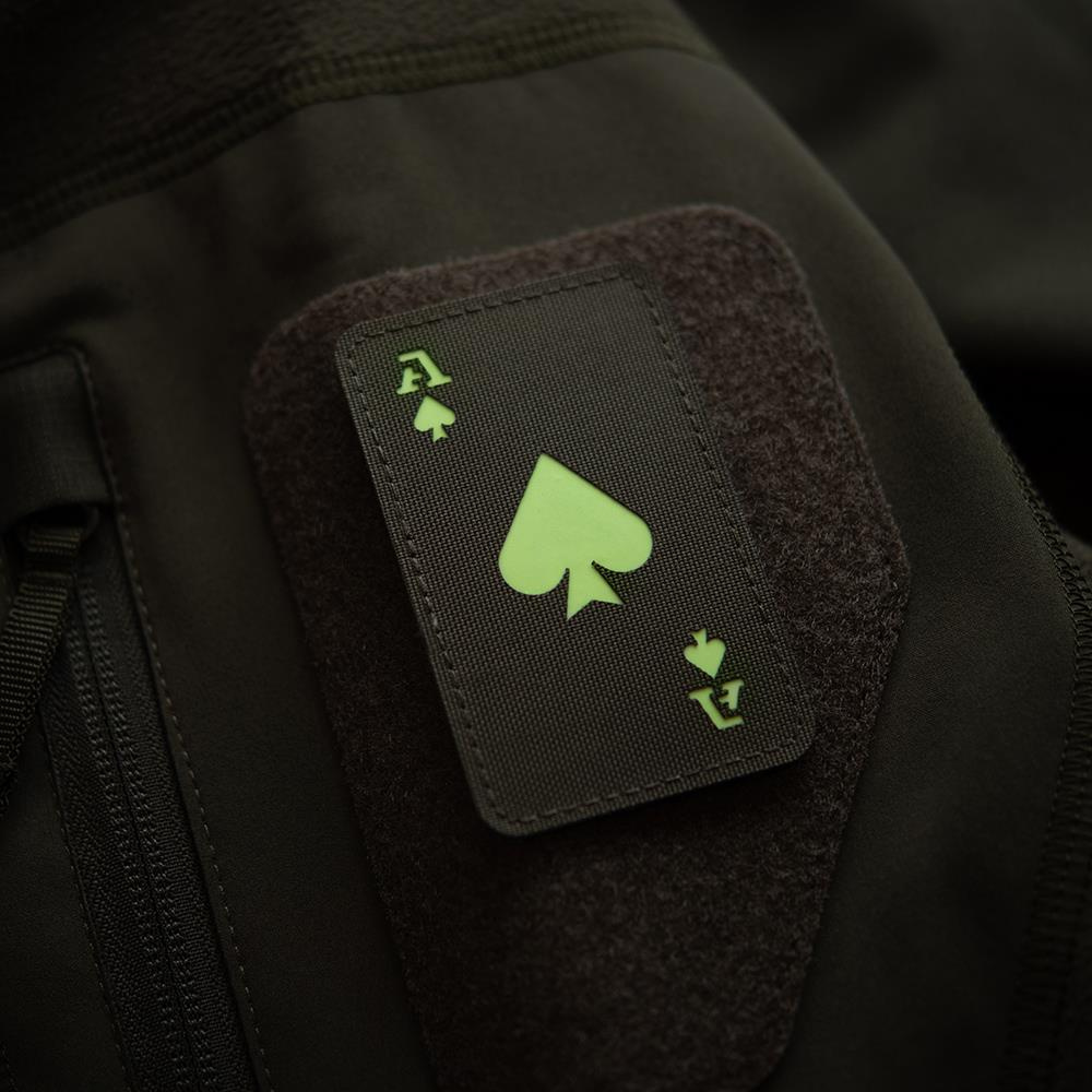 M-Tac patch Ace of Spades Laser Cut. An American who served in Vietnam from 1967-1968 talks about how the ace of spades was interpreted: "The ace of spades was a death card. Its use in Vietnam meant something like 'I understand that my job is to kill the enemy. And I'm ready to do it." It can be thought of as the opposite of the peace sign. The image is made of fluorescent material that glows in the dark.