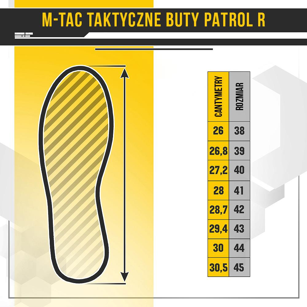 The M-Tac Patrol sneakers from M-Tac brand combine affordability and good quality. The shoes are made of high quality natural leather and synthetic materials. The tip of the shoe is reinforced with additional padding made of leather covered with rubber. The method of fixing the sole: thermo-vacuum. This means that it is not stitched together with the attachment to the shoe, thus providing additional protection against moisture penetration. The upper layer of the sole is polyurethane and has shock absorbing properties, reduces impact loads, and provides the sole with comfort, lightness, and increased thermal insulation. The bottom layer of the sole is abrasion resistant as it is made of rubber and has a high traction coefficient, which greatly extends the life of the sole.