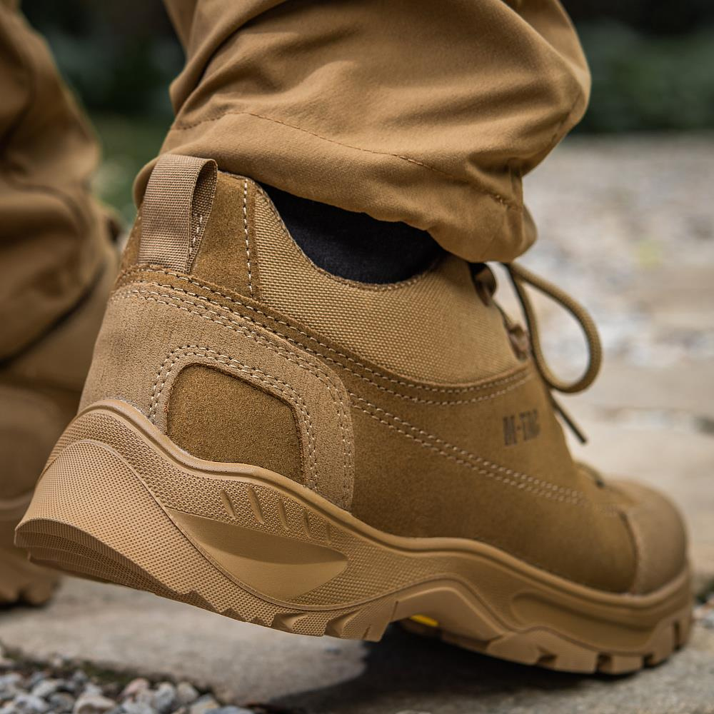 The M-Tac Patrol sneakers from M-Tac brand combine affordability and good quality. The shoes are made of high quality natural leather and synthetic materials. The tip of the shoe is reinforced with additional padding made of leather covered with rubber. The method of fixing the sole: thermo-vacuum. This means that it is not stitched together with the attachment to the shoe, thus providing additional protection against moisture penetration. The upper layer of the sole is polyurethane and has shock absorbing properties, reduces impact loads, and provides the sole with comfort, lightness, and increased thermal insulation. The bottom layer of the sole is abrasion resistant as it is made of rubber and has a high traction coefficient, which greatly extends the life of the sole.