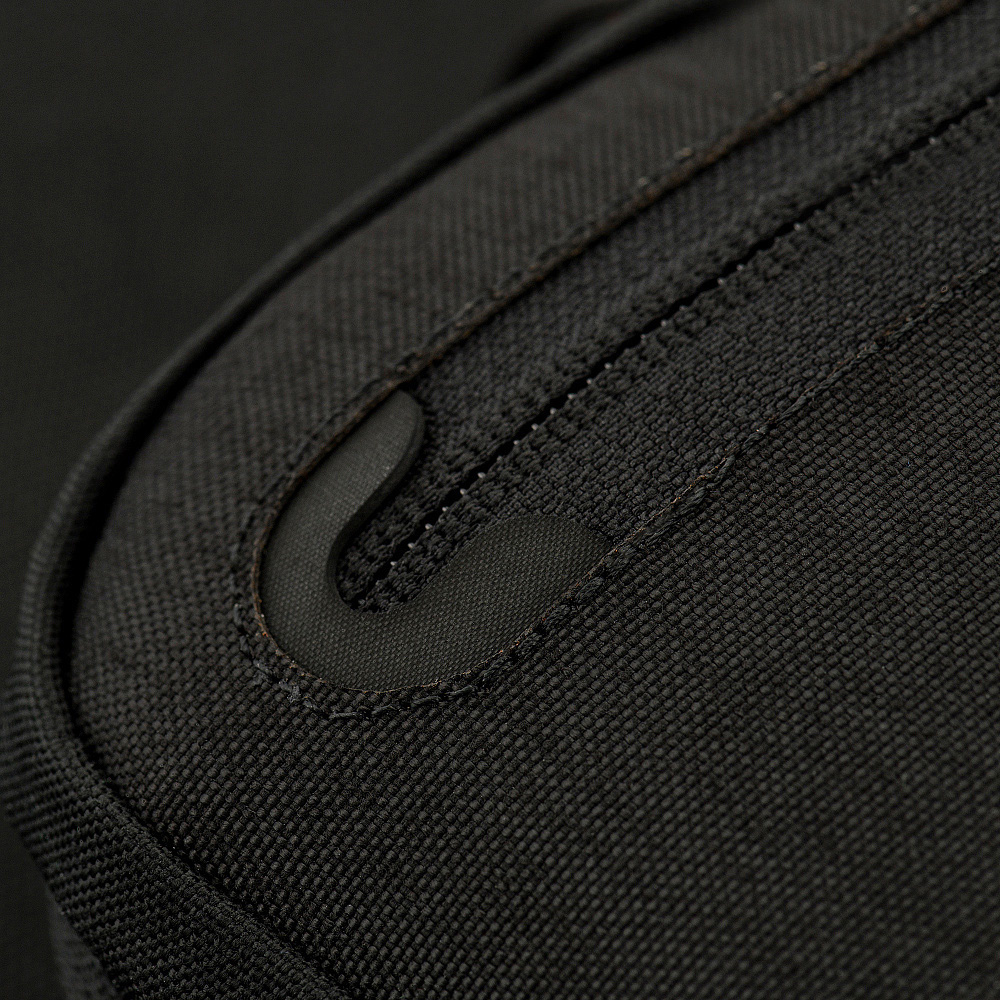 The pounch offers convenient placement of items in one large interior pocket that opens at a 90-degree angle and one smaller one located on the outside. Both are fastened with a YKK zipper. The larger pocket has elastic inner bands to carry a multitool, knife or flashlight. They provide easy access and keep the contents well organized.