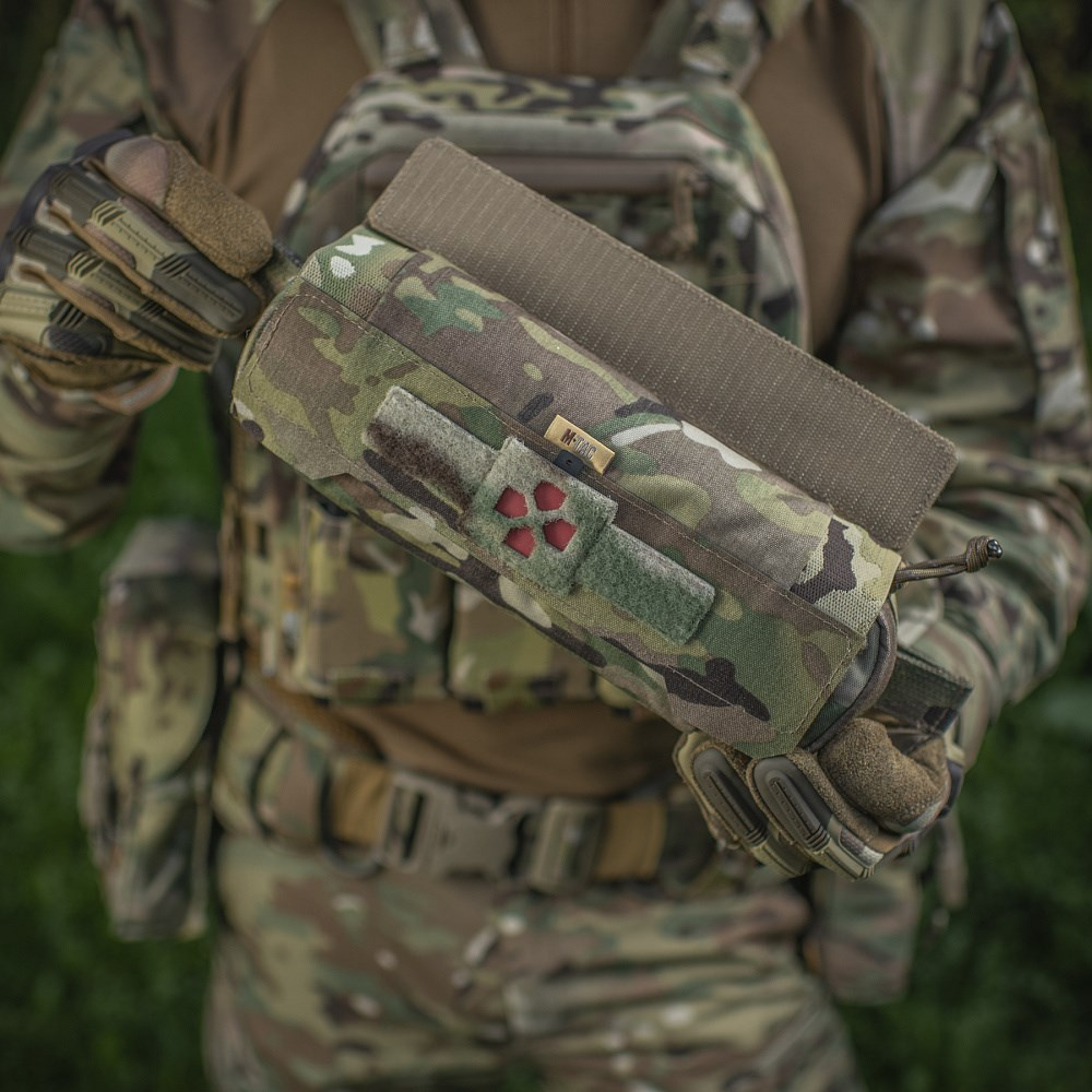 The M-Tac Rool Elite first aid kit is a horizontal and detachable medical container with a rollable, two piece design, which is perfect as an IFAK. Made of Cordura 500D and Cordura Squadron. The ease of mounting to equipment such as a Plate Carrier vest is due to the Velcro panel, and the speed of access in an emergency is the strong point of the M-Tac first aid kit.