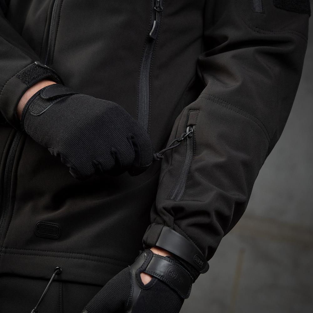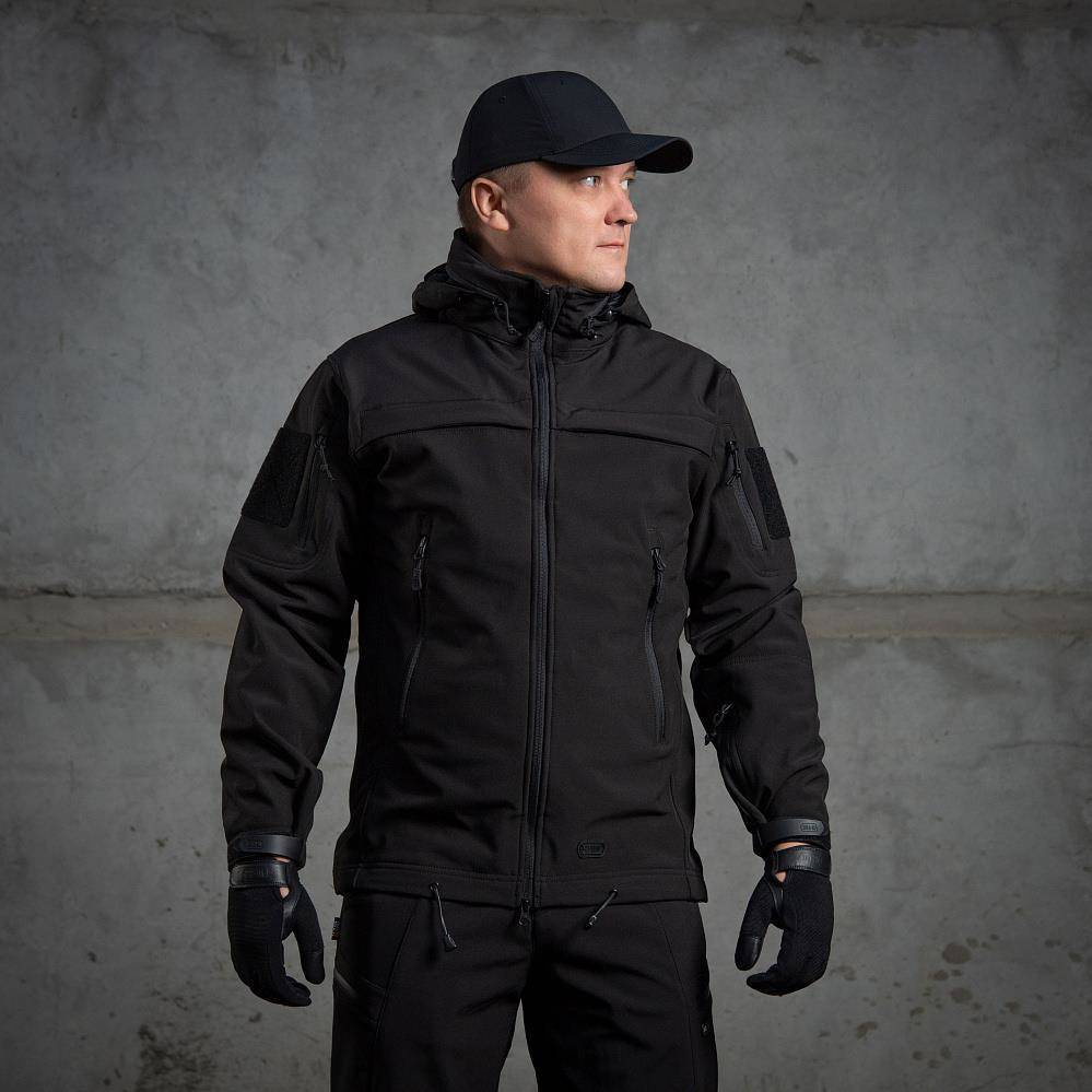 The M-TAC Soft Shell Police Jacket is made with an interlayer polyurethane membrane that protects against inclement weather. Inside the jacket there is a thin field r. The dynamic cut does not restrict movement. The hood can be tucked into the collar, plus it can be adjusted with the chest pocket. It has two identification panels that can be accessed or hidden depending on the situation.