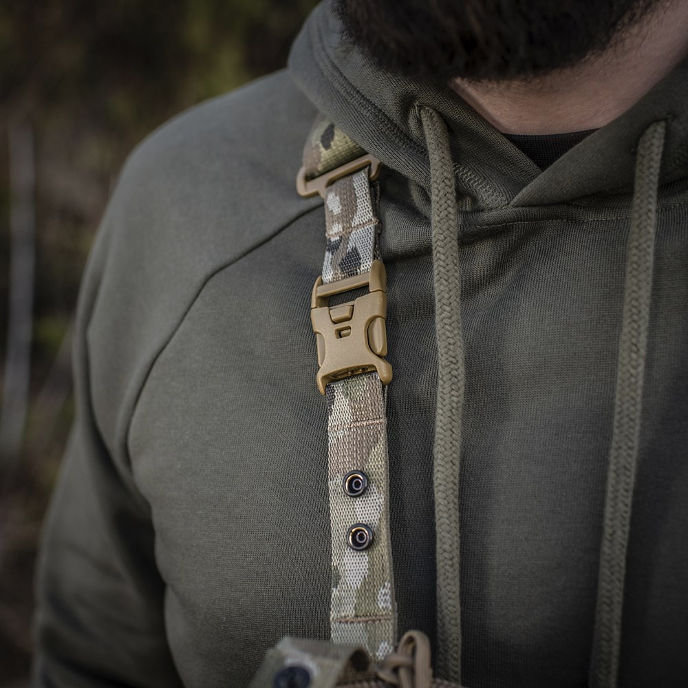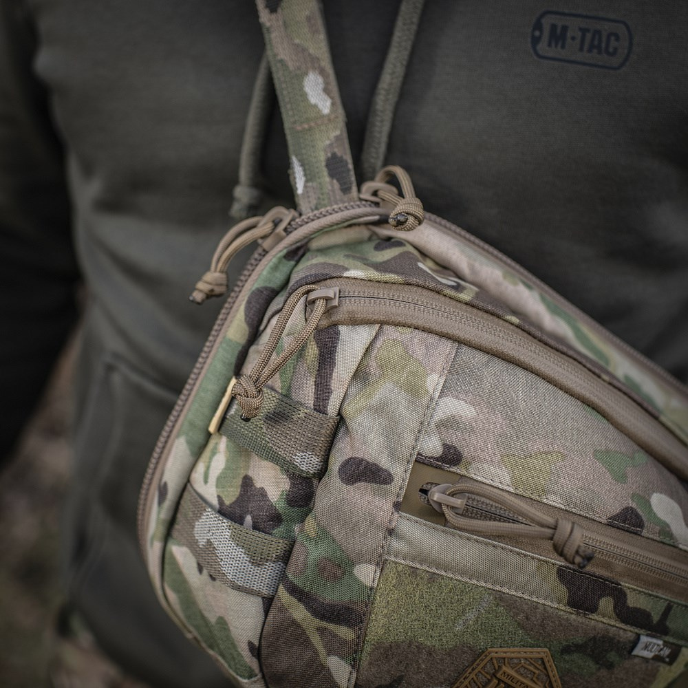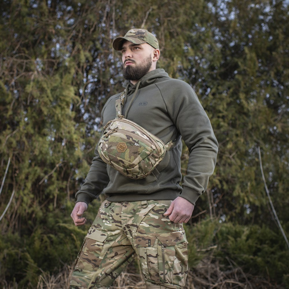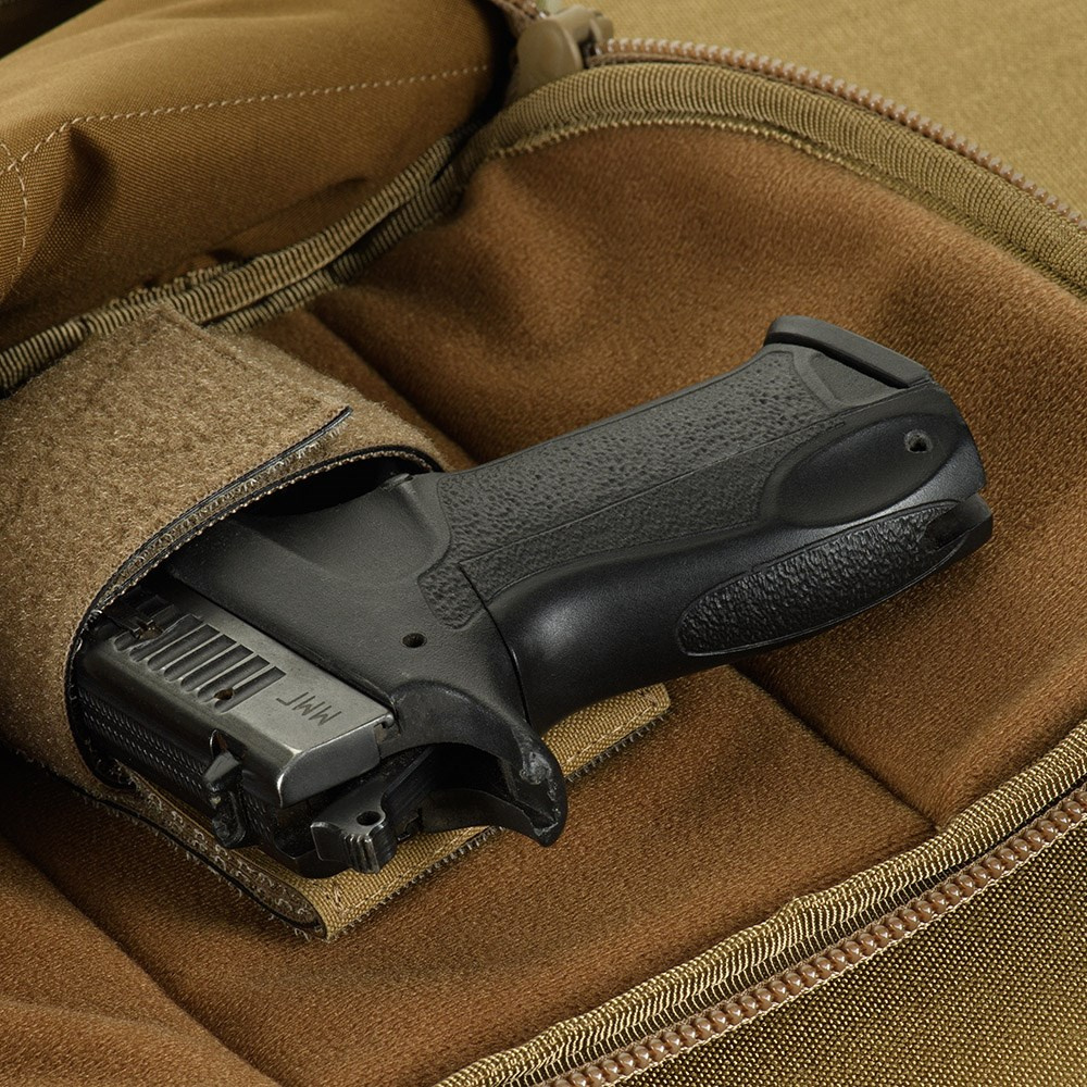The bag has one capacious main compartment, which will fit all the necessary items, such as documents, phone, wallet or folding knife. A dedicated compartment allows you to carry your firearm comfortably, while a smaller pocket makes it easy to organize small accessories. An adjustable strap allows you to wear it as a hip bag or on the shoulder. The whole is completed with MOLLE system webbing for mounting additional equipment and Velcro panel for attaching patches.