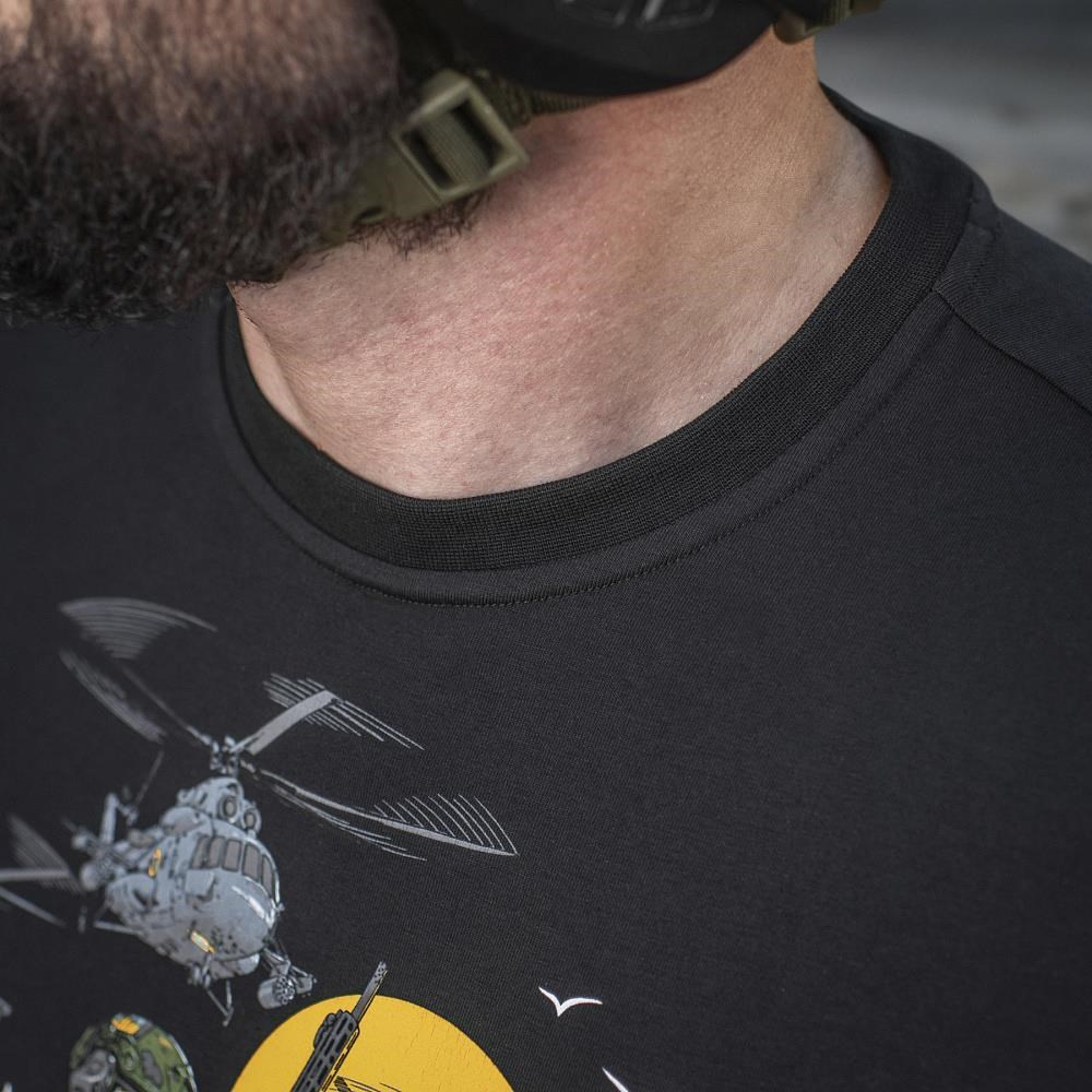 The T-shirt was designed with comfort and style in mind. It features a classic, fitted cut and short sleeves. The chest features striking graphics, inspired by the movie "Apocalypse Now", depicting waves, a surfboard and a stylized special forces officer. In turn, on the left sleeve there is a print depicting the "Jolly Roger" flag. The T-shirt will be perfect for everyday use, especially when paired with tactical pants or a military sweatshirt.