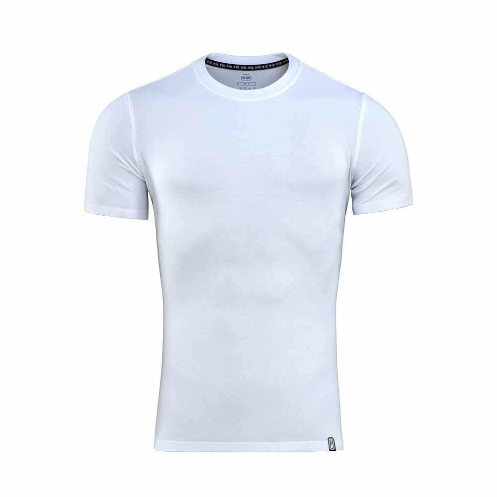 - Comfortable and pleasant to the touch short-sleeved T-shirt made of 93% cotton and 7% elastane. It has a classic cut and does not restrict movement. It does not lose its cut after washing. Ideal for wearing on warm summer days. Color: White.
