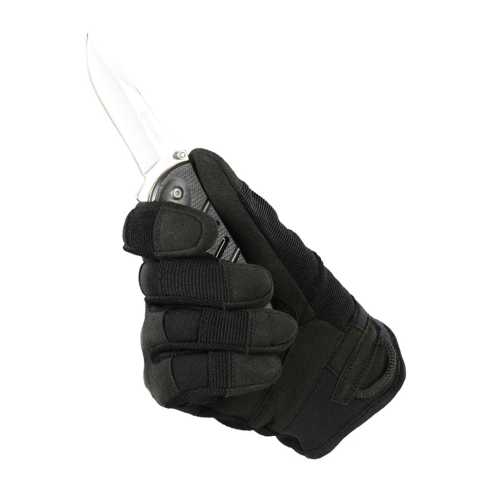 Tactical Shooting Gloves Assault Mk.6 from M-Tac. Made of durable synthetic leather and nylon for excellent ventilation and sweat-free hands. The gloves protect your hands from mechanical injury and guarantee a firm grip when holding, for example, a flashlight. Reinforcements on the knuckles protect against impacts, and elastic panels ensure freedom of movement.