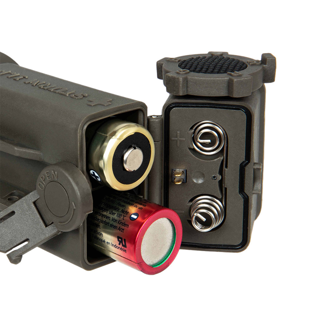 The light mode is selected by profiled gear-shaped knobs. Maximum power of white light - 90lm. Powered by two CR123A batteries. Batteries can be easily replaced by opening the body without tools. The flashlight has a 1Hz strobe mode, activated by selecting and activating the desired mode and intensity, then holding down the button. There is a gasket inside to make the device more waterproof and a connector to ensure reliable operation of the angle light.