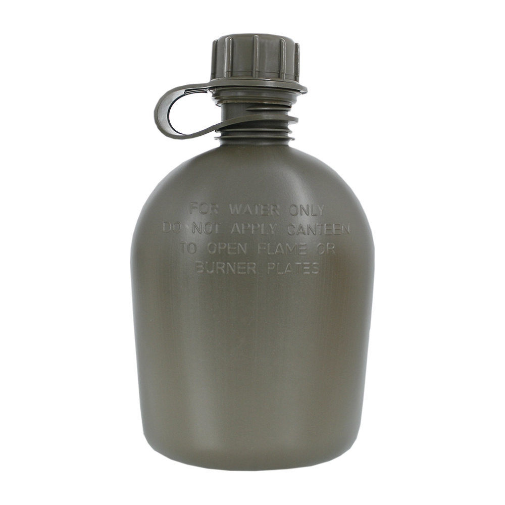 The US 1QT canteen is made of durable, non-toxic polyethylene, and its polyester pouch is equipped with press-studs and a small pocket, such as for water decontamination tablets. The canteen's stopper is attached with a special loop, which prevents it from being lost.