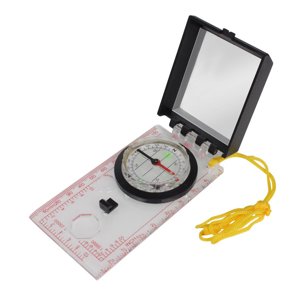A built in mirror allows you to take precise bearings, and a magnifying glass makes it easier to read map details. Map graduations and rulers in centimeters and inches allow quick distance conversions. A two color magnetic needle and fluorescent markers ensure legibility in limited light. For your convenience, the compass is equipped with a yellow cord that allows you to hang it around your neck or attach it to your gear, bag or backpack.