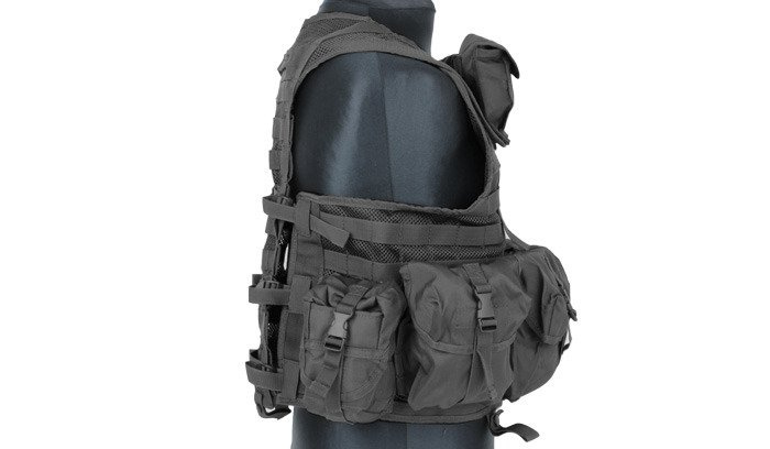 Lower waist attachments, fastened with Velcro and snaps, reduce shifting of gear on the move, and a front zipper allows quick donning and doffing of the vest. It comes with 7 modular pouches that allow you to carry larger equipment.