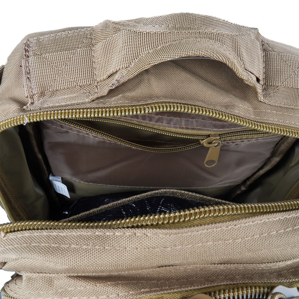 On the front are sewn two pockets. In the lower one are placed an extra compartments. All pockets have strong two-way zipper with thick teeth and pull cords for easy and quick use.