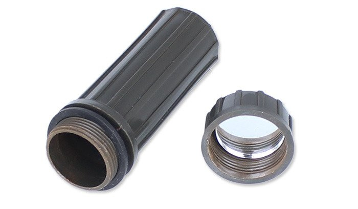 The Waterproof Matchbox from Mil-Tec is made of durable polypropylene. It ensures that the contents are protected from moisture thanks to a cap with a gasket. At the bottom of the container there is a rod for flaming. Inside the cap there is a mirror, which can be used for signaling or as an aid to starting a fire.