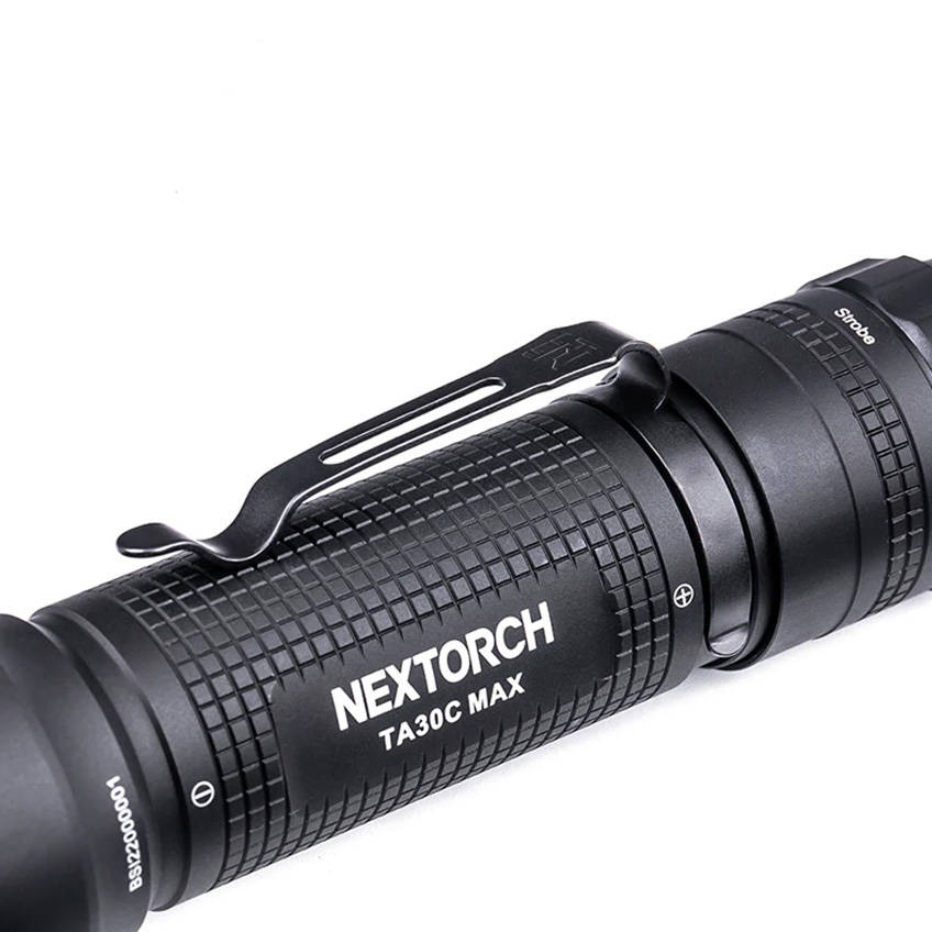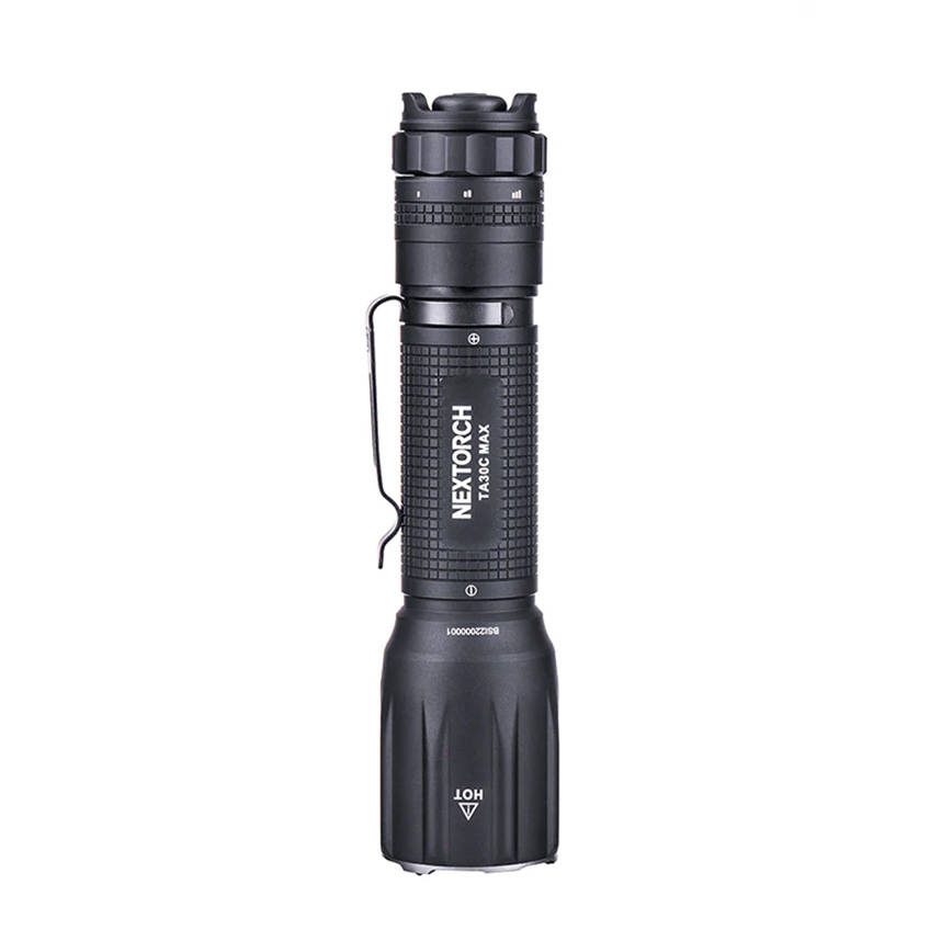 The TA30C MAX flashlight can operate in one of five modes: Low (70 lm), Medium (520 lm), High (3000 lm), and one of two strobe modes (3000 lm). The range of the light beam, depending on the selected mode, is up to 390 meters.