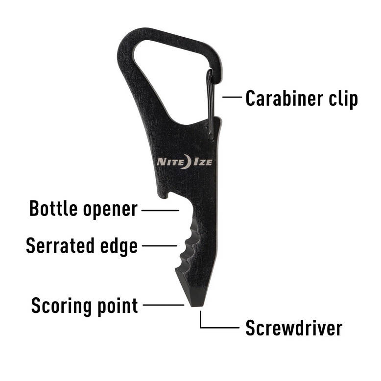 he Nite Ize DoohicKey carabiner is a small, 5 in 1 multifunctional tool that is worth having with you at all times. The size does not differ from the size of a standard key.