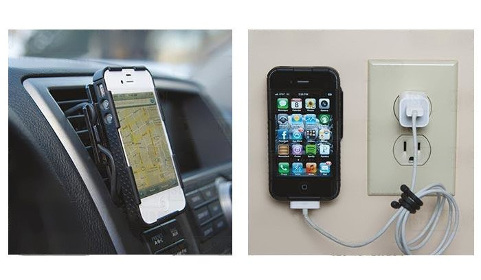 Made of sturdy Lexan® polycarbonate, and designed to easily attach to the Connect Case's Connect Clip, the Connect Cradle has a durable, flexible Gear Tie attachment that configures in a multitude of ways. Bend the two arms at 45 degree angles to the base and insert them into the vent. You can then easily view maps or activate Siri all while keeping your iPhone viewable from your dash and connected to its accessories. Detach the Connect Case from your Connect Cradle so it stays in place on the dashboard, or keep it clipped to the case and take it with you. Just bend the Gear Ties back over the Connect Clip and your streamlined case fits flat in your pocket again. Bend the Gear Tie at the base of the Connect Cradle to create an instant tabletop stand, for easy location and viewing at home or office.