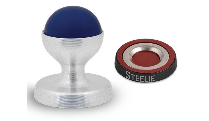 With its ingenious magnetic design, the Steelie HobKnob Kit is a fun, innovative way to create both a handle and mini stand for your tablet, e-reader, or other device. Simply peel and attach the Steelie Magnetic Tablet Socket to the center of the back of your tablet or its rigid case. The Steelie Magnetic Tablet Socket Component is a strong, machined aluminum base containing a powerful, circular magnet ringed and centered with flexible silicon and backed with 3M®'s VHB™ foam adhesive tape.