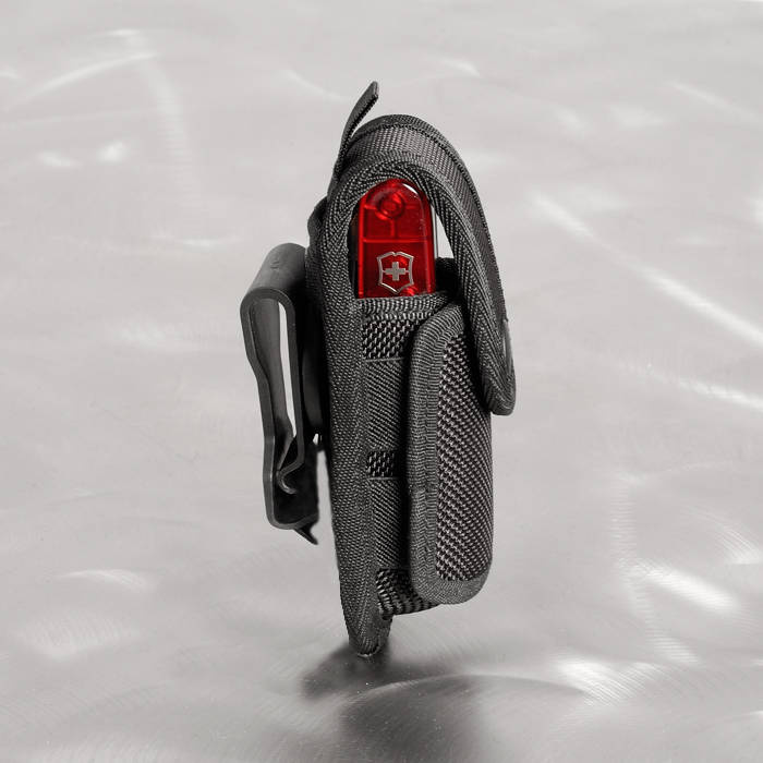* Universally sized rugged holster for virtually any size multi-tool or pocket knife.