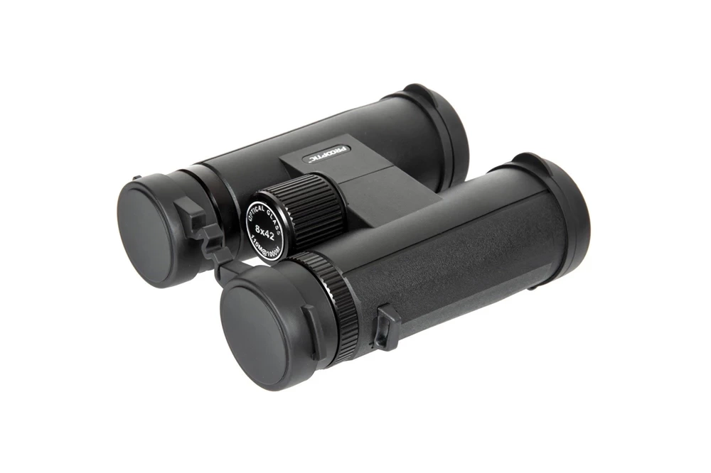 Prooptic binoculars combine robust construction with excellent optical performance. The fixed magnification of 8x and high mechanical resistance make them ideal for hiking, nature observation and sporting events. The binoculars' housing is made of rubber coated aluminum, which makes it durable and perfectly absorbs impacts.