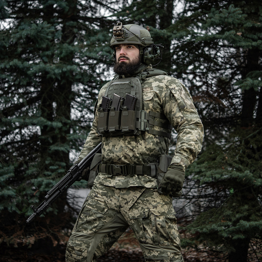 Internal ventilation panels provide effective air circulation, increasing comfort even during long wear. The M-Tac vest is adapted to carry ESAPI standard ballistic plates in size L and the shoulder and waist adjustment system allows for a precise fit. The overro features an administration panel, 3 AR/AK carbine pouches and an escape handle.