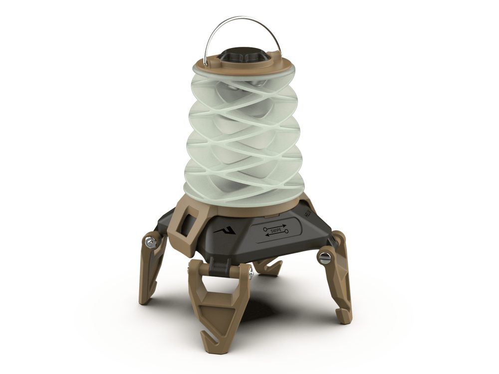 The lamp's design allows you to easily stand, hang or hook it where you need it. The foldable shade diffuses light well and evenly illuminates your surroundings. Folding legs allow you to hang it in a tent or on a rope in your camp.The lamp is equipped with a powerful white Maxbright LED, and two Ultrabright LEDs in red. The entire unit has been sealed to protect it from rain, dust and dirt.