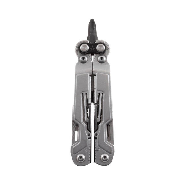 Multitool equipped with 18 tools. The operation is based on the patented Compound Leverage mechanism. It works by using multiple pivot points, which generate a greater stroke of the handle in relation to the movement of the pliers, making work with them lighter and easier. The design allows access to the tools from the stowed position. It has a clip for attaching it to a belt or pocket.