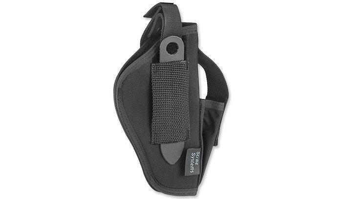 Retention strap with push button snaps open for a fast draw. A additional safety strap keeps the gun securely in the holster during the most rigorous activities.