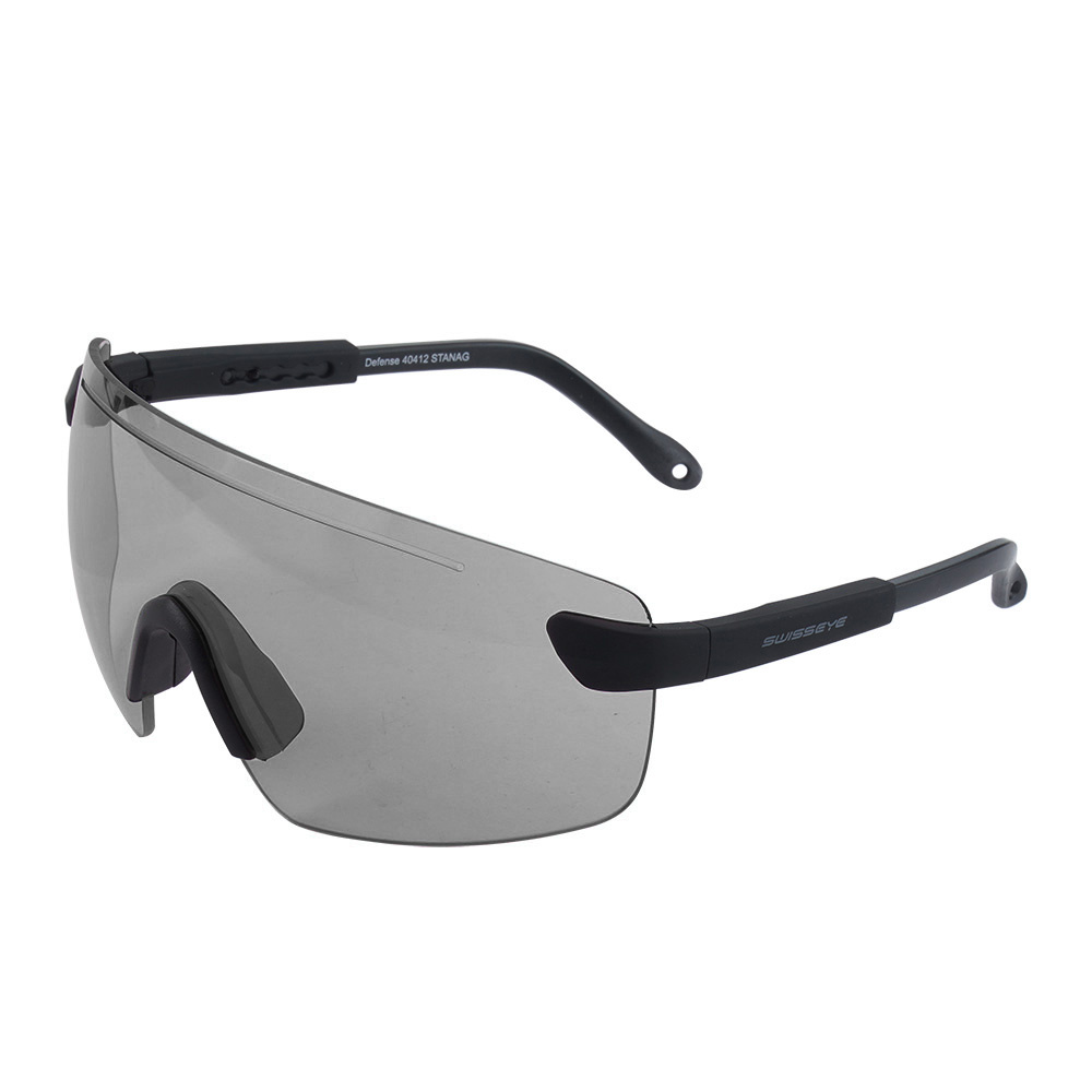Tactical glasses Defense from Swiss Eye. They feature a spacious visor mounted directly on the temples, which covers a large part of the face. It allows the wearer to shield not only the eyes, but also the area around the eye socket. Thanks to the lack of frames used, the user will have the full field of vision covered by the visor.